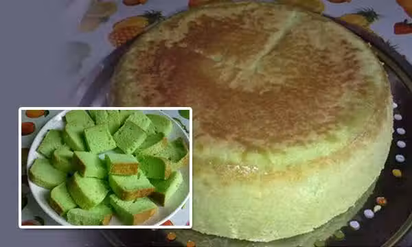 4. 電飯鍋裏抹上少許食用油,倒入麵糊,輕輕搖一搖,讓麵糊均勻。