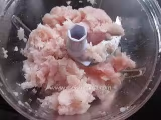 5. 將魚肉放進料理機裡面打成蓉,當然有時間慢慢剁更好