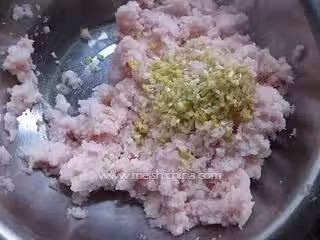 7. 加入蔥薑末裡面順一個方向攪勻