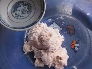 9. 加入水裡面,開始用手使勁的順一個方向不斷地攪拌,再加入鹽裡面攪拌