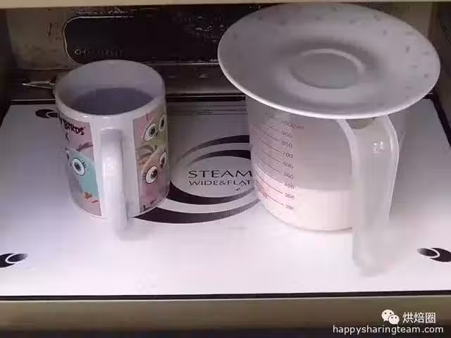 以中大火蒸20分鐘,倒入蒸籠前記得先把米漿攪拌,蒸的模具(7寸圓形,18cm)塗上一層油。