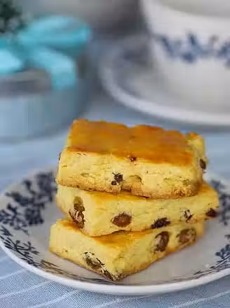 低筋麵粉 195g,蛋黃 3個,奶粉 12g,黃油 80g,糖粉 70g,葡萄乾 80g,蛋黃液半個(刷表面)