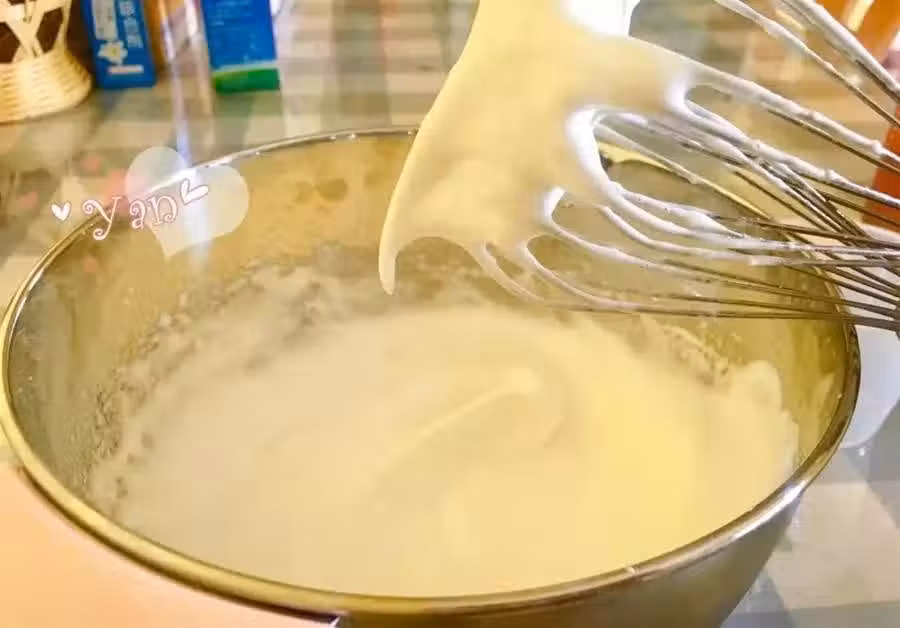 蛋清加入分三次加入細砂糖用電動打蛋器打發至濕性發泡