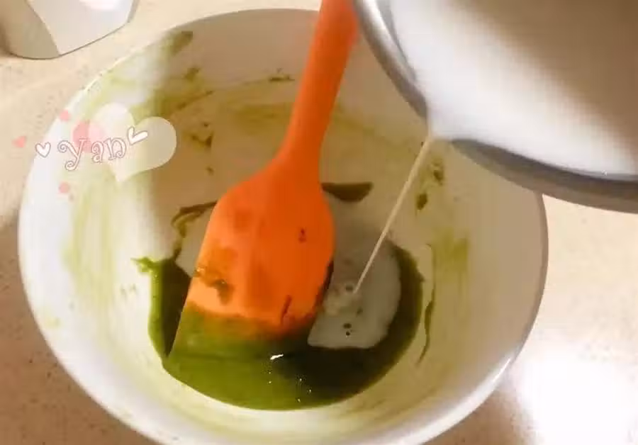 混合好的牛奶蛋黃糊過篩,然後再倒入鍋內,繼續用小火加熱至變得粘稠關火,快速放入冷水中降溫