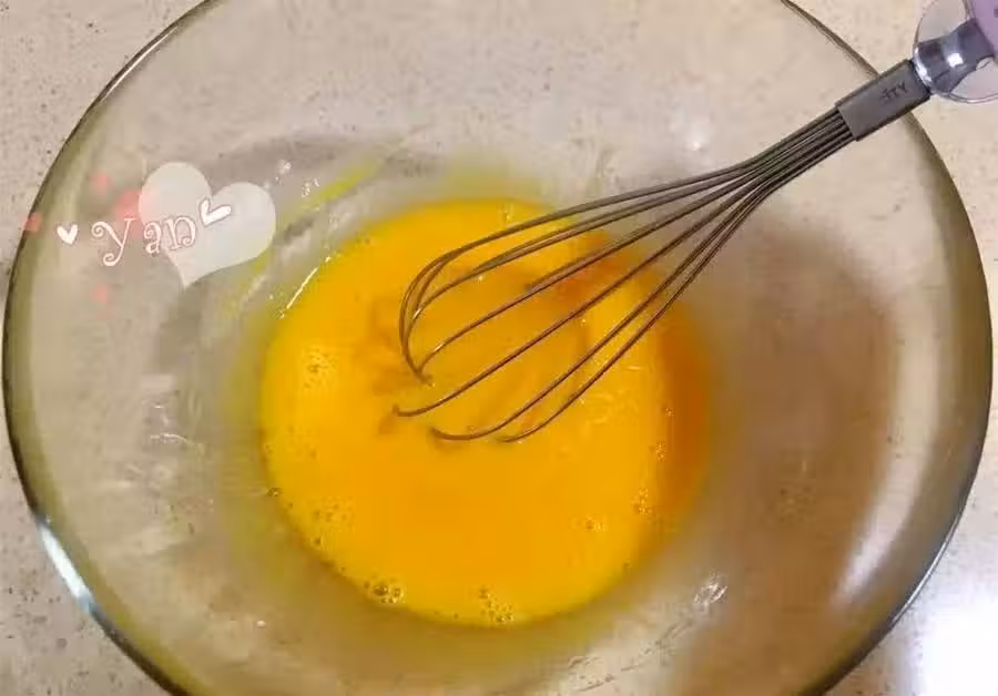 雞蛋蛋清蛋黃分離,蛋黃加入牛奶、植物油,用電動打蛋器打發至濃稠