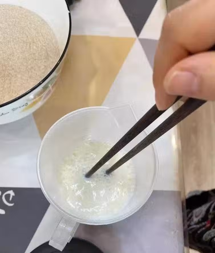 3、全麥粉中加入鹽,雞蛋,椰子油混合均勻