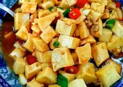 用料:豆腐,油,鹽,麻辣醬,花椒,干辣椒