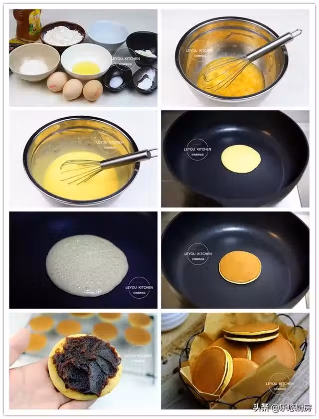 第八步:往紅豆沙上再蓋上一片餅,一個銅鑼燒就做好了。