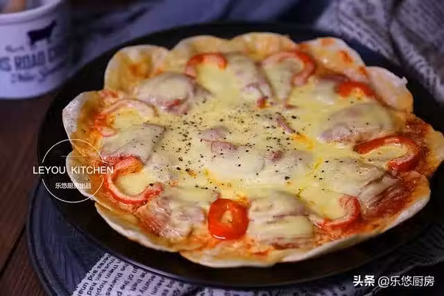 第一步:準備食材。剩餃子皮適量、培根幾片、紅椒1個、洋蔥少許、馬蘇里拉芝士碎適量。