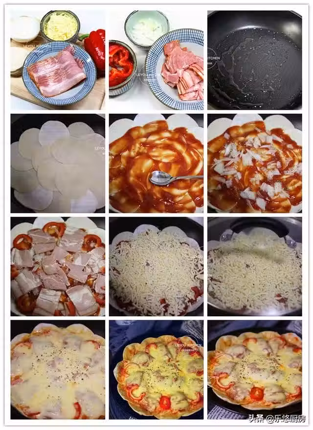 2、 披薩是最隨意的,所有食材完全可以按自己的口味來放,想吃什麼就放什麼,但注意別放太多,因為咱們這個是用平底鍋做的,太多太厚不易成熟。如果放太多的話,建議用烤箱來烤。