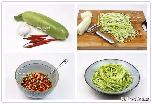 第四步:把翠玉瓜絲放入碗中,吃的時候淋上料汁即可。