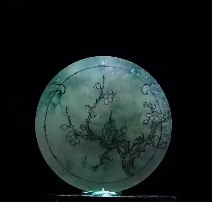 玉雕師取一塊翡翠手鐲心,開展山水玉雕的創作思考。