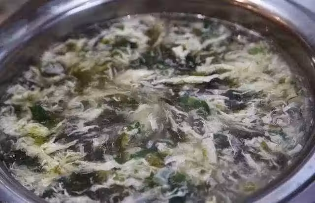 44、湯太膩,將少量紫菜在火上烤一下,然後撒入湯中。