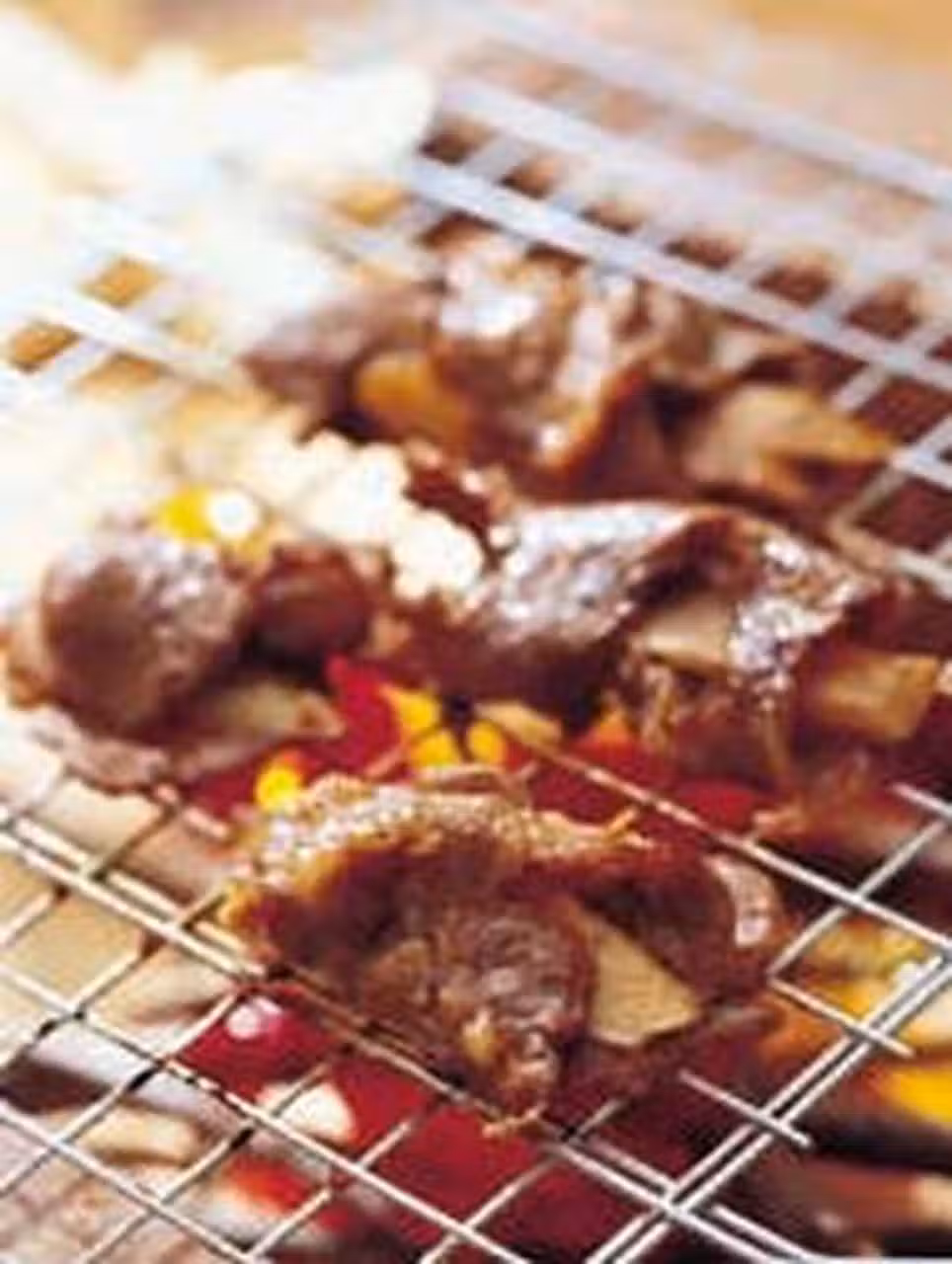 4 肉片兩面烤熟,就可以把薑片捲入豬肉片中,一起溶合入味,即可食用。