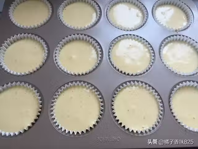8、烤箱預熱170度5分鐘,然後再溫度調到150度,把模具放入烤箱中層,烤25分鐘就可以了,烤到中途的時候,蛋糕會比較膨大的,快熟透的時候,會回縮一點點,全部熟了以後,就不會再回縮,好吃的小蛋糕就做好了。