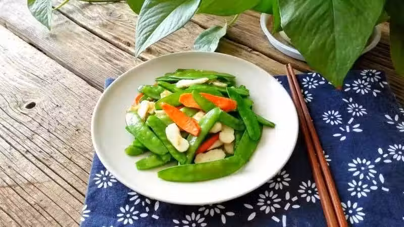 1. 荷蘭豆去頭尾,絲絡,洗凈;馬蹄去皮洗凈;胡蘿蔔洗凈
