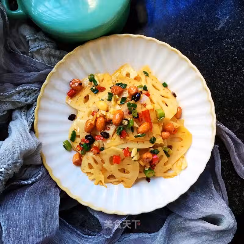 2. 把醬汁、炸花生米與蓮藕攪拌均勻即可