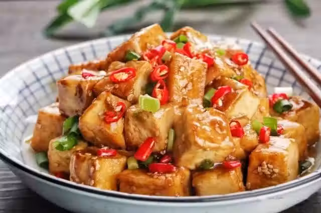 3.倒入豆腐,加200ml水,燉到水收至一半。根據個人口味加鹽。
