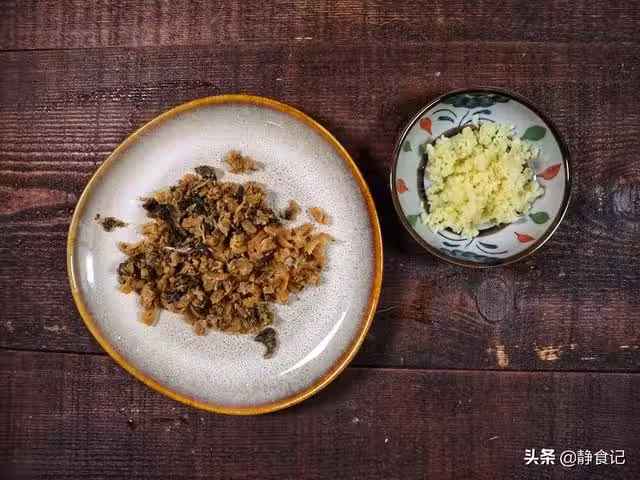 調味:加入1勺糖(提鮮),玉米澱粉和花生油(讓肉質更滑嫩),鹽可放可不放,因為梅菜偏咸,可以加點蚝油提鮮。順時針攪拌均勻,注意不要攪拌至起膠,不然口感會發硬。