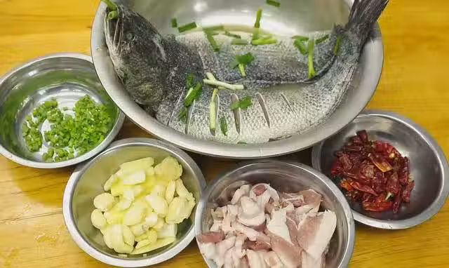 2、在魚身上多斬上兩刀,好熟、好入味,準備一盆涼水,撒把鹽,把魚搓洗10分鐘,魚肉更加緊實白嫩。取出黑魚,加胡椒粉,一丟丟鹽,適量料酒,幾個小蔥段,搓揉入味。