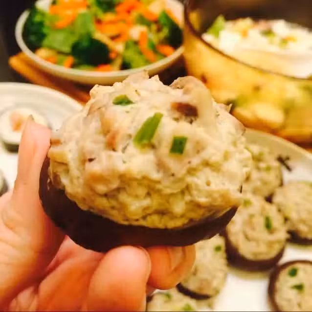 香菇挖掉內部變成小碗狀,把挖下來的香菇切丁,打兩個雞蛋放少許鹽入雞蛋