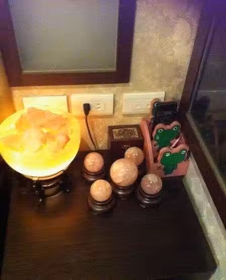 有一個小空間,裡面種了一些花花草草,還擺了一把椅子和一個可愛的抱枕,讓她可以放鬆,也可以躺在上面敷面膜。