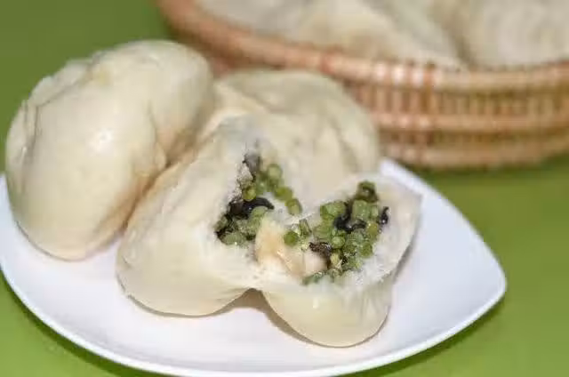 4.面加入酵母水和成光滑的麵團醒發至原麵團的幾倍大,分成小份擀薄片包成包子,放到涼水蒸鍋裡二次醒發。