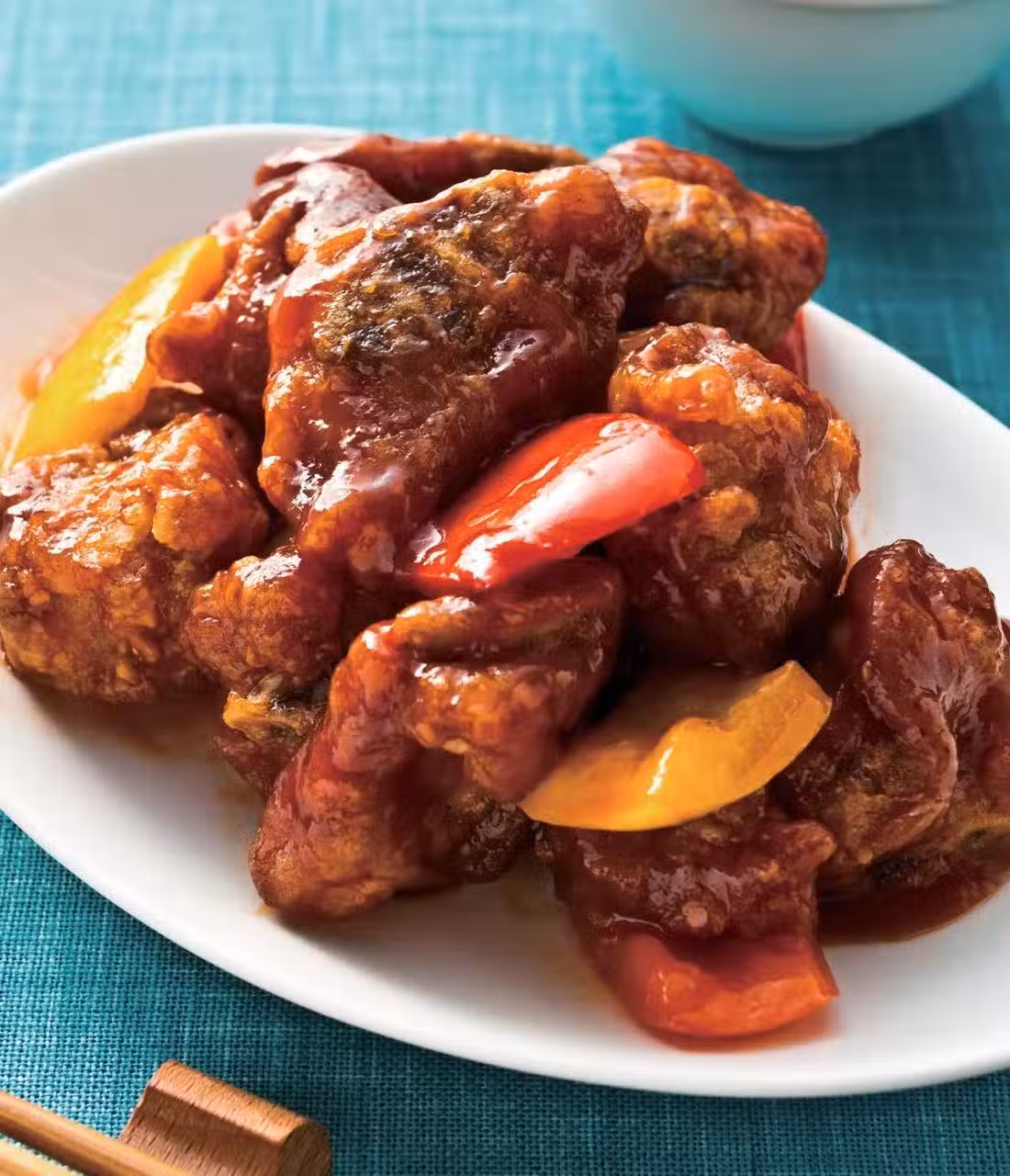 4 熱一鍋,油熱後將作法2的豬小排塊下鍋,以小火慢炸,約5分鐘至熟。