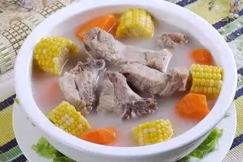 原材料:玉米棒150克,排骨250克,紅蘿蔔50克,生薑、紅棗少許。