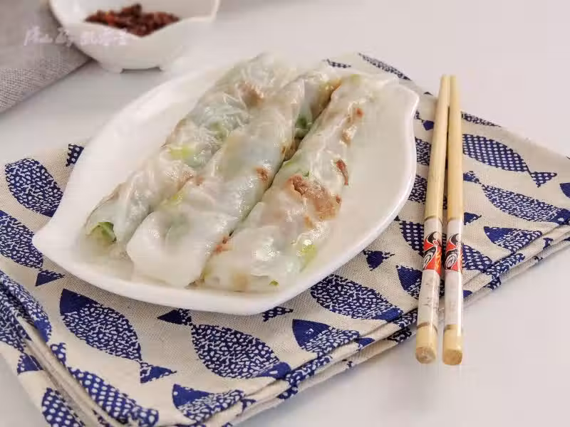 4.腸粉加熱時間短,豬肉必須切碎一點才容易蒸熟。