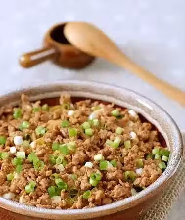 2.肉切末會用攪拌器攪打成肉泥,用勺料酒,少許鹽腌製片刻,十分鐘左右即可。