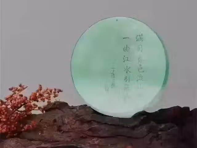 掛件的背後雕刻師也做了精心的處理,雕了一行詩。寥寥數字就把整件翡翠的意境升華,所以說飄花非常是很適合這種題材的!