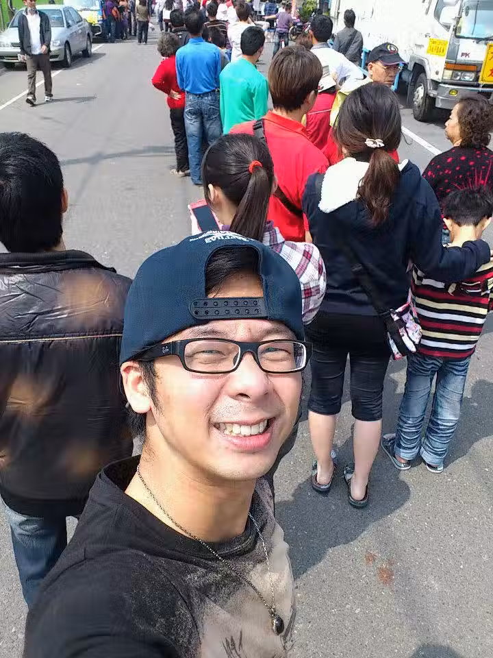 有一次民視一姐陳美鳳到餐廳用餐,員工們都很驚喜,還鼓吹阿甘出去和陳美鳳「認親」,但他因在工作中,加上自認狀態不佳而婉拒,不料卻被同事說:「所以你在演藝圈也就這樣而已,難怪會來當洗碗工!」這句話如同當頭棒喝,但他不氣餒,他告訴自己:「有戲我就拍,沒戲我就認真過生活!」