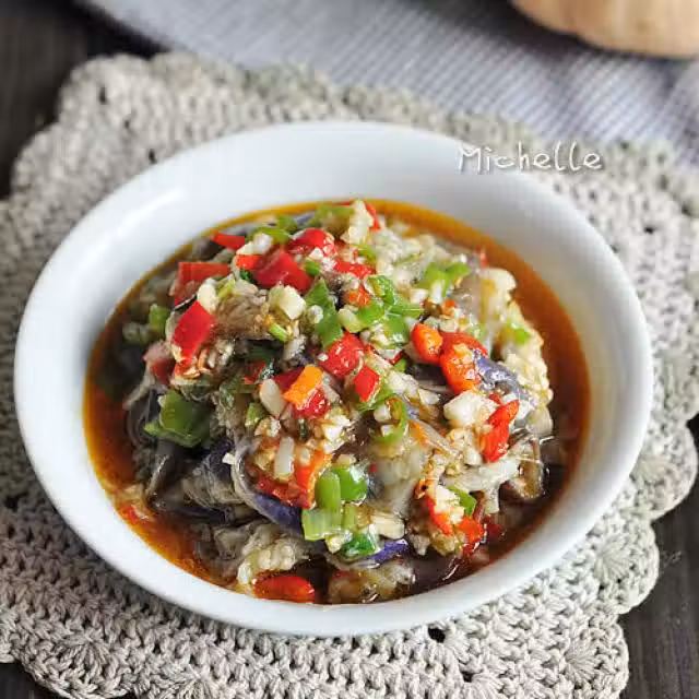 3、蒸熟的茄子用手撕成細條,入適量生抽醋小磨香油無需放鹽