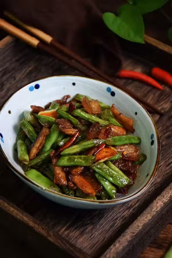 1. 五花肉炒四季豆