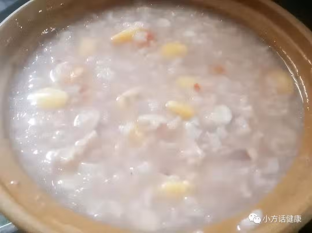 適用於脾胃虛弱、便溏腹瀉者。做法:炒芡實30g、白扁豆30g、粳米100g分別洗凈,用水浸泡1小時左右。然後把所有食材和水一起倒入砂鍋中,大火燒開後轉小火熬煮,待米、豆都軟爛時加少量冰糖調味即可。