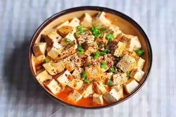嫩豆腐、辣椒粉、花椒粉、郫縣豆瓣、水澱粉、姜、蒜、生抽。
