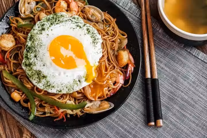7、放上溏心荷包蛋,撒海苔碎,開吃!