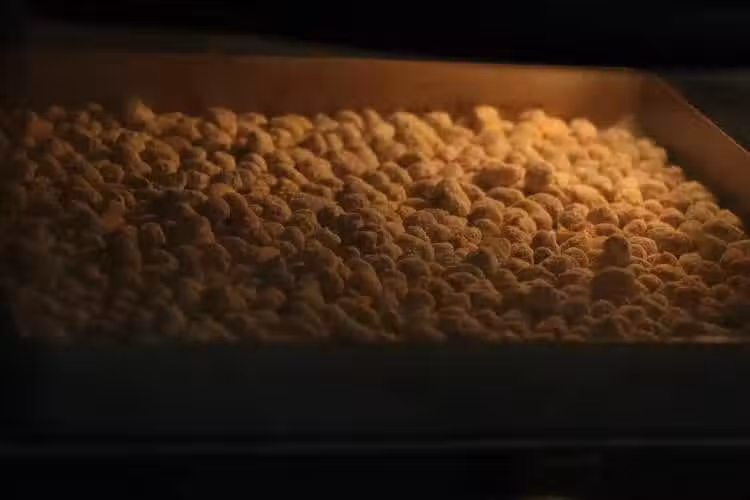將生花生放在烤盤上,用烤箱烤15-20分鐘,直到花生變成金黃色。取出後可以加入適量鹽調味,非常適合當作下午茶的零食。