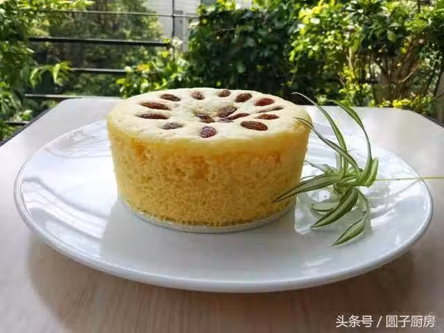 用料:中筋麵粉(普通麵粉)100克;玉米粉(細玉米面)100克;雞蛋1個;水170克;白糖35克;泡打粉(可不加)2克;酵母3克;葡萄乾(紅棗)表面裝飾隨意;6寸活底圓模一個;