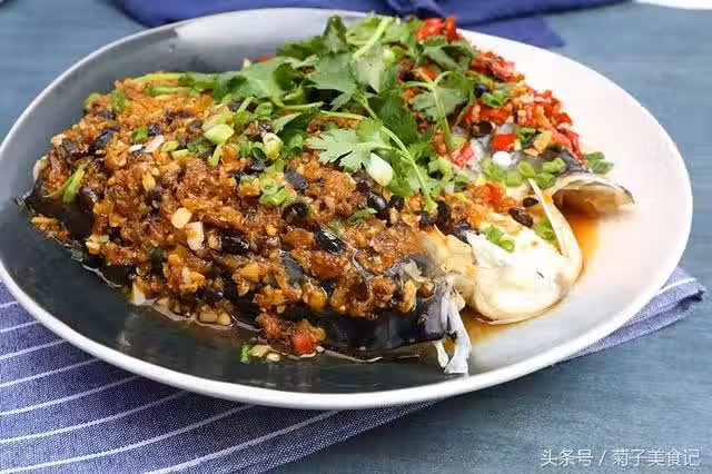 第一步:準備食材調料,花鰱魚魚頭 一個 / 姜 / 蒜 / 鹽 / 油 / 糖 / 豆豉 / 料酒 / 香菜 / 海南辣椒醬 / 湖南剁椒 / 蒸魚豉油 / 小蔥