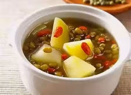 材料:綠豆200公克、木瓜50公克、枸杞20公克