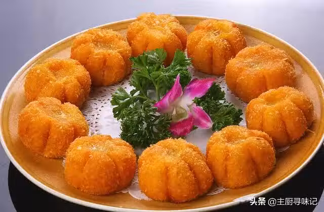 第二步:然後把做好的芝麻餡料包入南瓜麵糰裡面,搓圓、壓扁。最後在平底鍋內倒入少許油,將做好的南瓜餅煎制兩面金黃即可。這個要趁熱吃,但小心燙到哦~