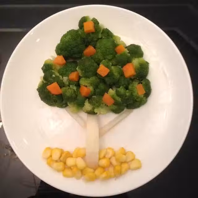 西蘭花;胡蘿蔔;玉米粒;梨