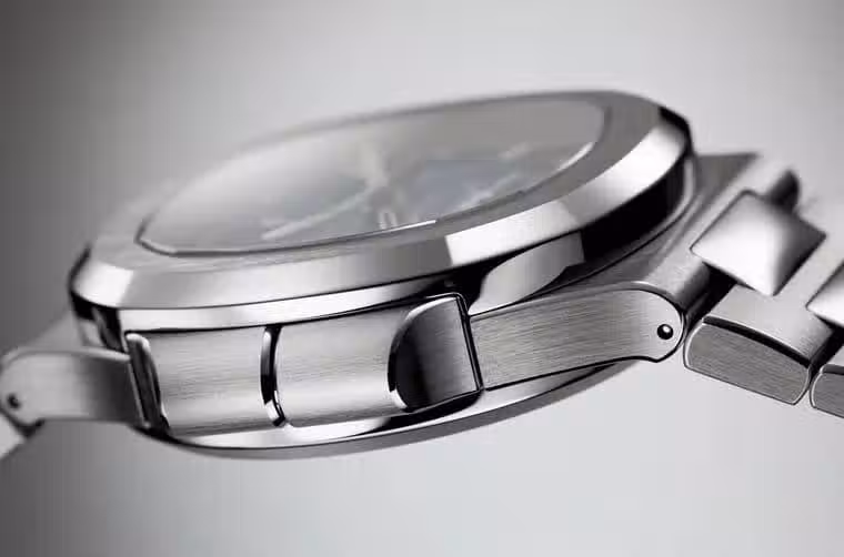 ▲5990/1A的兩地時間顯示功能可透過左面橫脊的增減校正按把調校,由於手錶與按把線條連貫,工匠須在錶殼開孔來接合每枚按把,同時保留120米的防水規格。