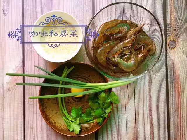 2、清洗蝦頭,小蔥白切段,蔥葉切蔥花,香菜切碎,姜切絲。