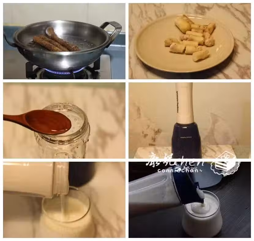 5、果汁機攪拌一下就有山藥牛奶,可以用料理機或者破壁機,選擇有攪拌功能的機器就可以了。