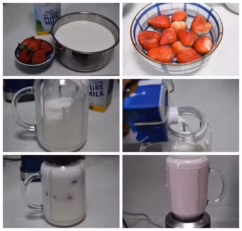 6、用果汁機攪拌一下就有好喝的草莓奶昔。