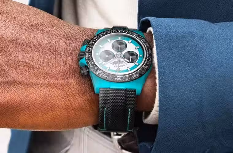 ▲表殼顏色相當大膽亮眼的Daytona 」Celeste」佩戴在手上肯定能吸引旁人注目。Source:Designa Individual Watches