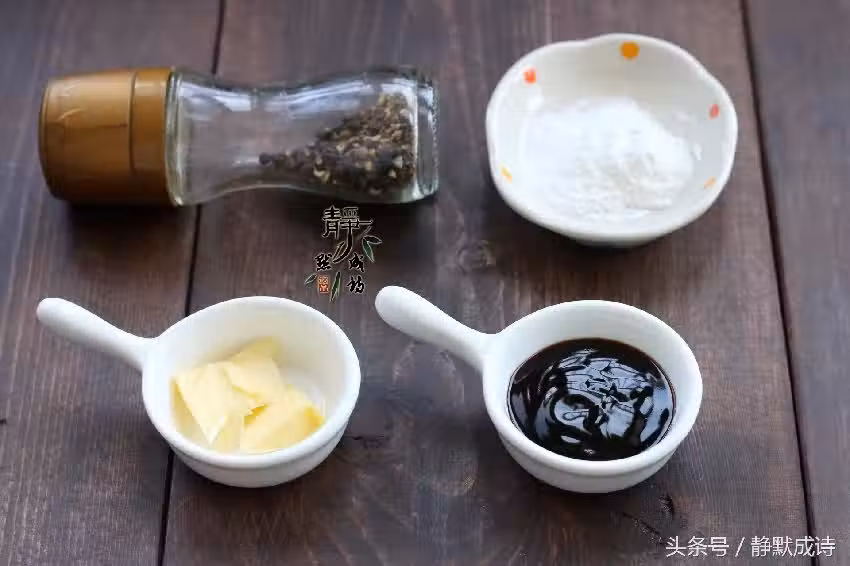 這是調味汁的全部材料。黃油最好是用無鹽的,因為這份味汁的主要材料是蚝油,如果你用了有鹽黃油,那麼勢必要減少蚝油的用量,也因此會影響味汁的口感。如果實在沒有黃油,可以省略不用。黃油有一點點就好,不要過多。